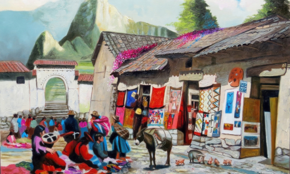 En los Andes, pintar es contar historias: la relación con la Pachamama, los ciclos agrícolas, las festividades, los animales sagrados y la vida cotidiana se plasman en murales, lienzos y tejidos llenos de color y simbolismo.
