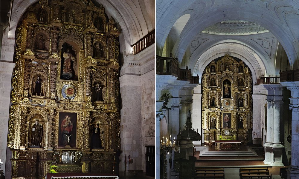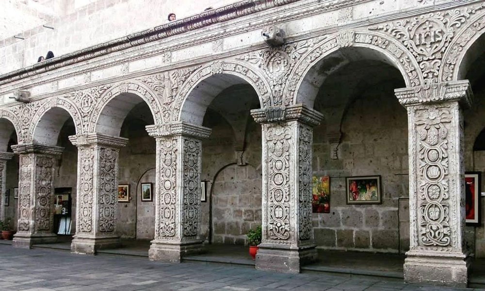 Su arquitectura hecha completamente de sillar —la piedra volcánica blanca que caracteriza a Arequipa— se convirtió en el lienzo perfecto para expresar una fusión artística única: figuras cristianas mezcladas con símbolos andinos, flora local, animales y detalles geométricos. Este estilo, conocido como barroco mestizo arequipeño, es considerado uno de los aportes más valiosos del arte virreinal peruano.