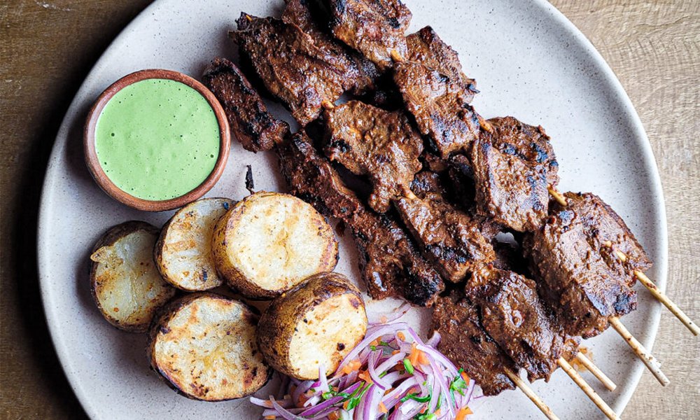 • Anticuchos  (brochetas de corazón de res)