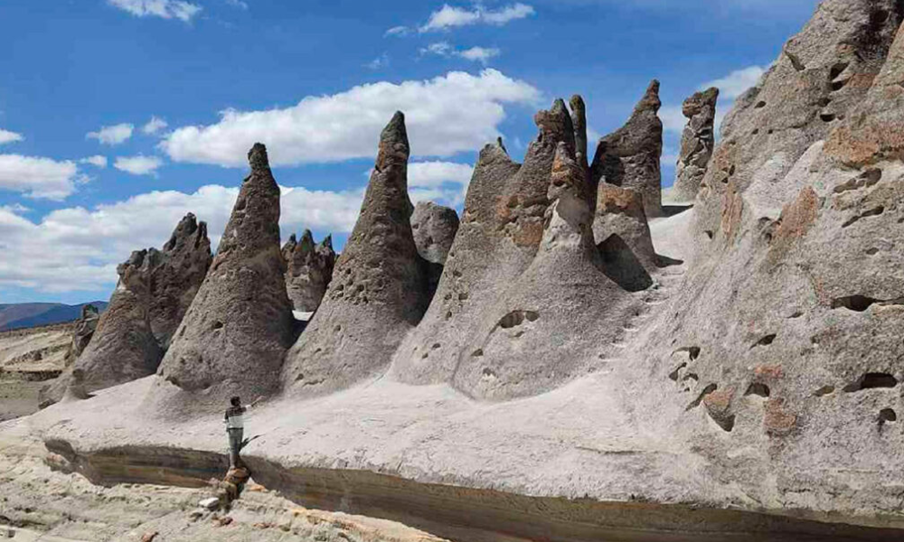 The Imata Stone Forest, located in the province of Arequipa, is one of the most striking geological landscapes in southern Peru. At over 4,000 meters above sea level, this natural wonder is formed by enormous columns, towers, and rock formations sculpted over thousands of years by wind, cold, and water erosion. Its appearance is so unique that, at first glance, it resembles a petrified forest stretching across a high plateau.