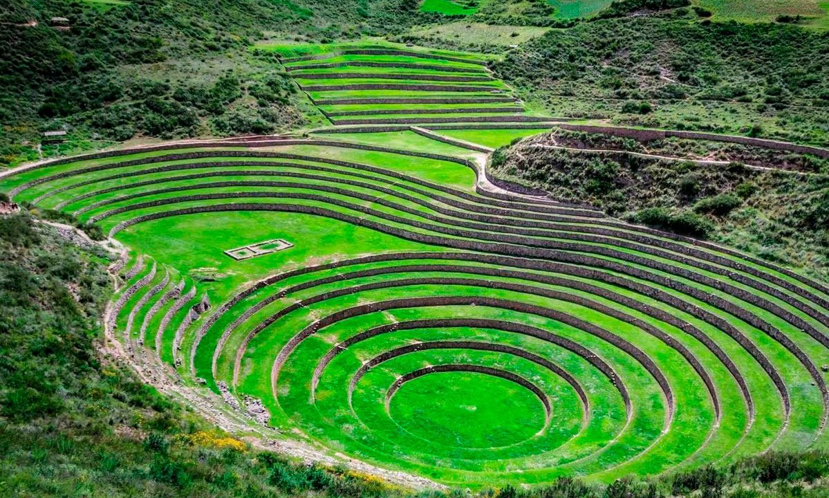O sítio arqueológico de Moray está localizado perto de Cusco, Peru. À primeira vista, assemelha-se a uma espécie de anfiteatro, composto por várias plataformas circulares, localizado a 3.500 metros acima do nível do mar.