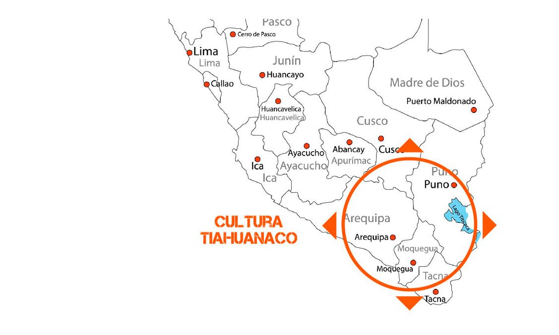 Entre aproximadamente 300 e 1000 d.C., desenvolveu-se a cultura Tiahuanaco, também conhecida como Tiwanaku. Foi uma das civilizações mais importantes e avançadas do antigo Peru e Bolívia. Seu domínio estendeu-se por toda a região andina, incluindo áreas dos atuais Bolívia, Peru, Chile e Argentina. O núcleo principal dessa cultura localizava-se no que hoje é a cidade de Tiahuanaco, no Altiplano boliviano, próximo ao Lago Titicaca.
